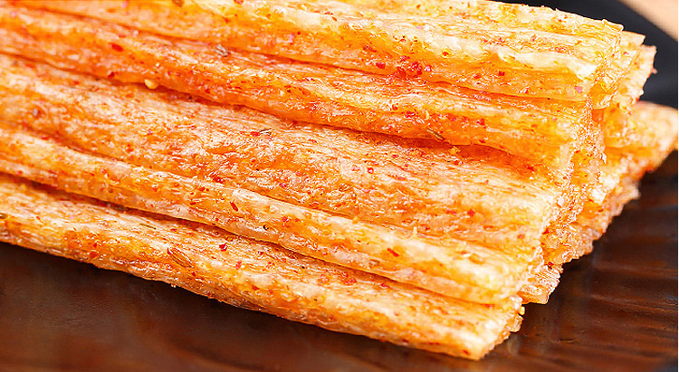 แผ่นแป้งเนื้อหยุ่นนุ่มแท่งรสเผ็ด รสเผ็ดจัดจ้าน หอมน้ำมันพริก